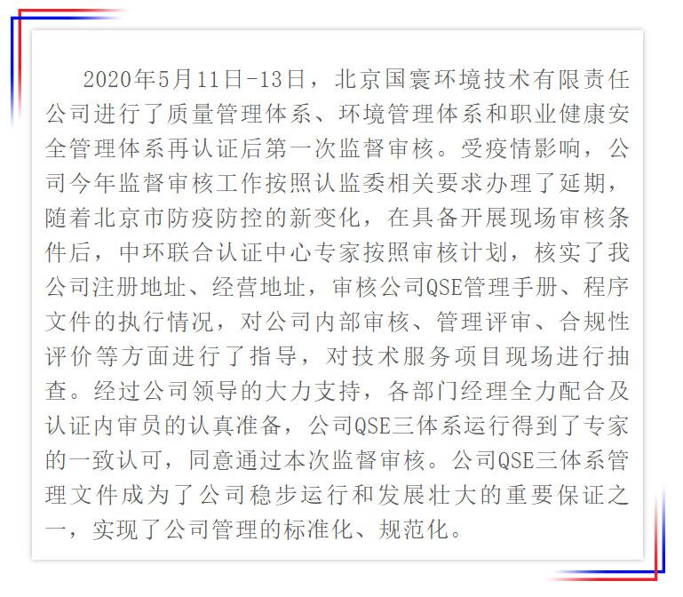 國寰公司通過三體系監督審核