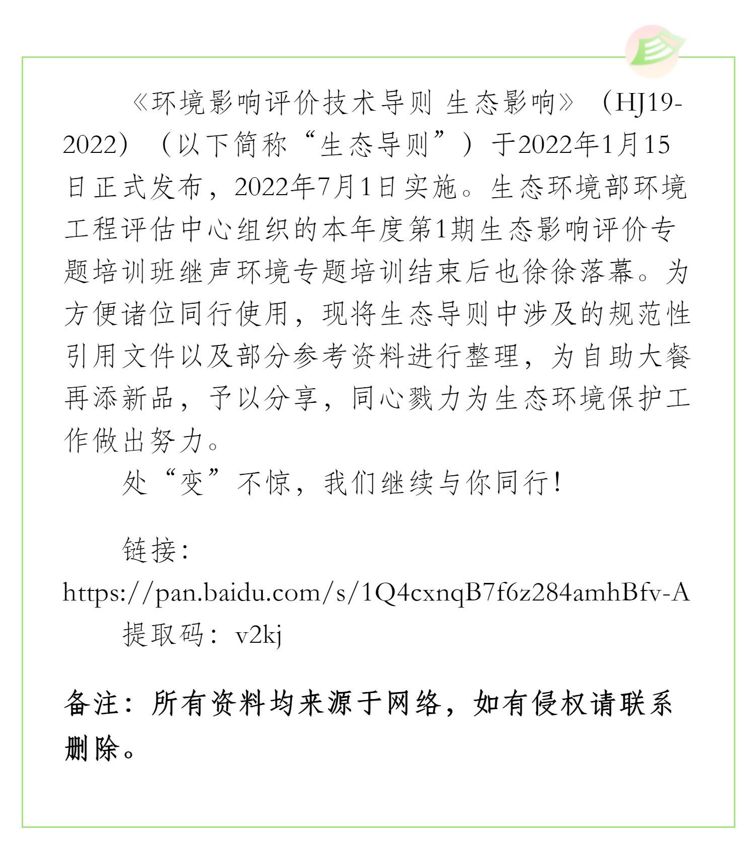 新環評導則發布,“干貨”自助餐再添新品(生態環境)!—生態導則規范性引用文件及相關資料包
