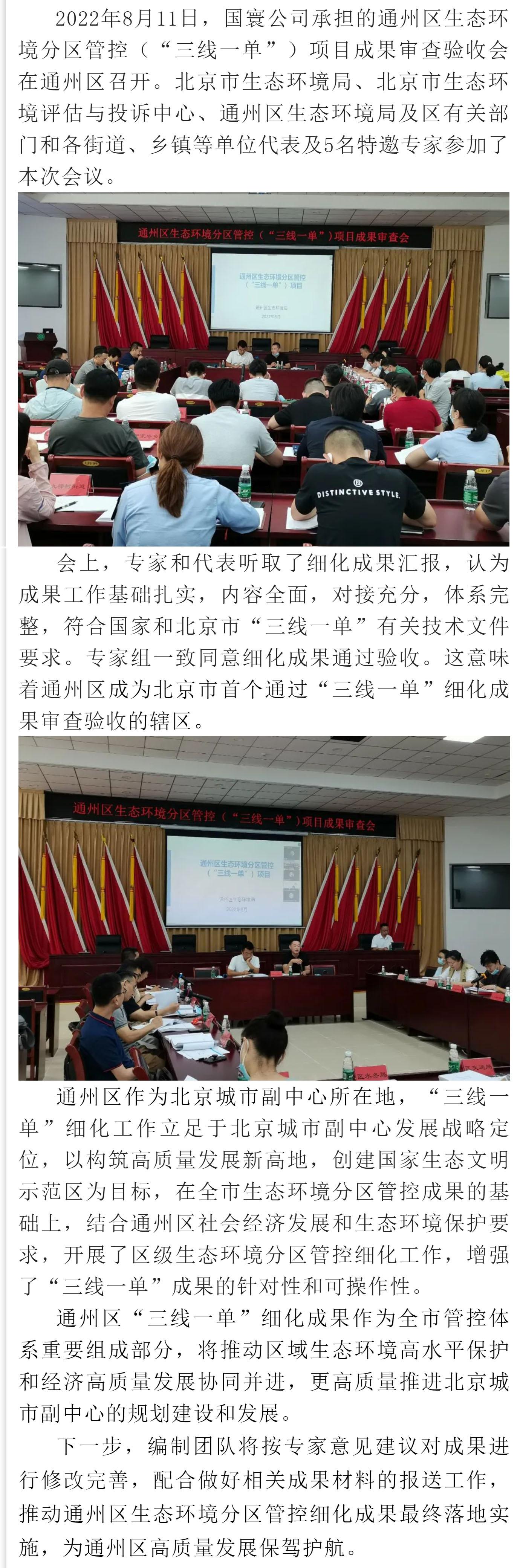 通州區(qū)“三線一單”項目細(xì)化成果順利通過驗收