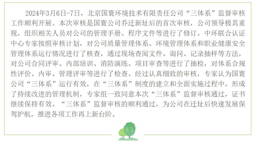 國寰公司順利通過“三體系”監督審核工作