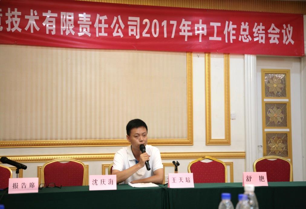 會上,各部門分別匯報了2017年上半年工作情況及下半年工作計劃。各部門負責人從業(yè)務工作、經(jīng)營指標完成情況,存在的問題,以及下半年的工作計劃等方面進行了匯報。公司董事、副總經(jīng)理沈慶海對2017年上半年重點工作完成情況做了總結。 最后,公司董事長、總經(jīng)理王天培對2017年下半年工作做了部署。王總首先對大家上半年的辛勤工作表示感謝,對取得的成績予以肯定。當前,環(huán)評還處在改革階段,大家一定要保持清醒的頭腦,要有危機感。同時,在工作中還存在一些亟待解決的問題:第一、工作面貌、工作狀態(tài)需要調(diào)整。用120%的勁頭面對工作壓力,克服困難;第二、企業(yè)轉型需盡快布局。要提早進行謀劃,提早進行布局;第三、市場維護工作需要加強。要發(fā)揮技術優(yōu)勢,做好市場維護。